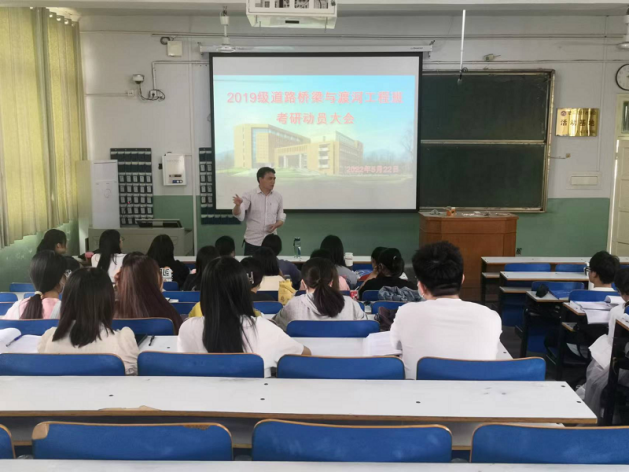 5月22日下午,永利集团官网道路与桥梁工程系在教二楼梯五教室成功举行了2023届毕业生考研动员大会,2019级道路桥梁与渡河工程专业全体学生参会,会议由系主任王士革主持,教师代表赵辉博士出席了此次活动。
