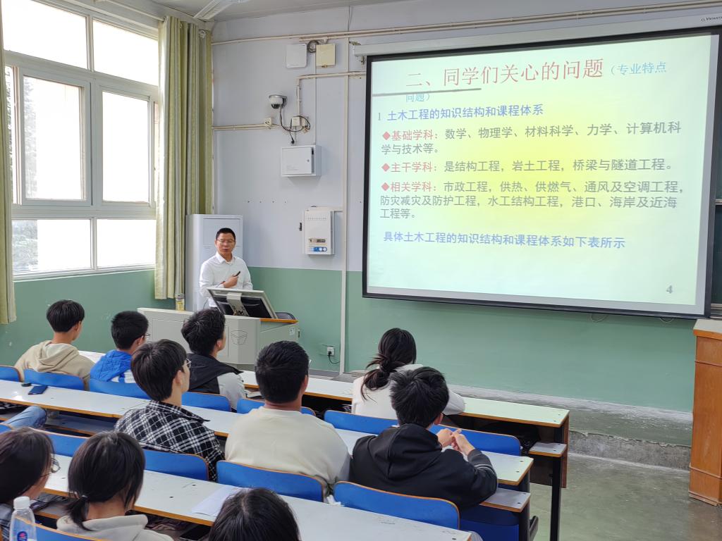 2023年10月19日上午,土木工程系在教二—T5教室开展了2023级土木工程专业新生入学教育活动,yl23411永利集团官网党委副书记冀鹏、土木工程系系主任高春华、教师代表王述超及2023级土木工程专业全体新生参加了本次活动,活动由高春华主持。