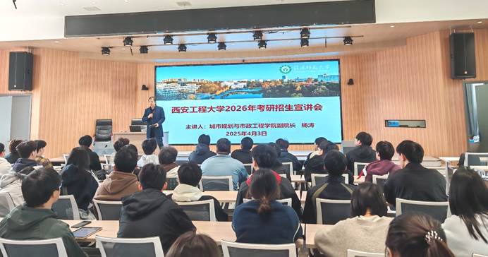 宣讲会上,杨涛副院长系统介绍了西安工程大学的办学沿革与学科布局,着重讲解了城市规划与市政工程学院在专业架构、科研创新等方面的建设成果,重点强调了土木工程专业在历史建筑保护领域的研究进展。围绕研究生报考关键环节,通过对比分析学术型与专业型硕士的课程设置、实践导向及发展路径差异,逐项说明各专业初试科目要求与复试考核标准,针对2021级本科生着重解读调剂政策实施要点,同时向2022级本科生发出报考邀请。在最后的交流互动环节中,杨涛副院长耐心解答了同学们在备考过程中关切的问题,勉励学子们合理规划复习节奏、锚定专业发展方向。