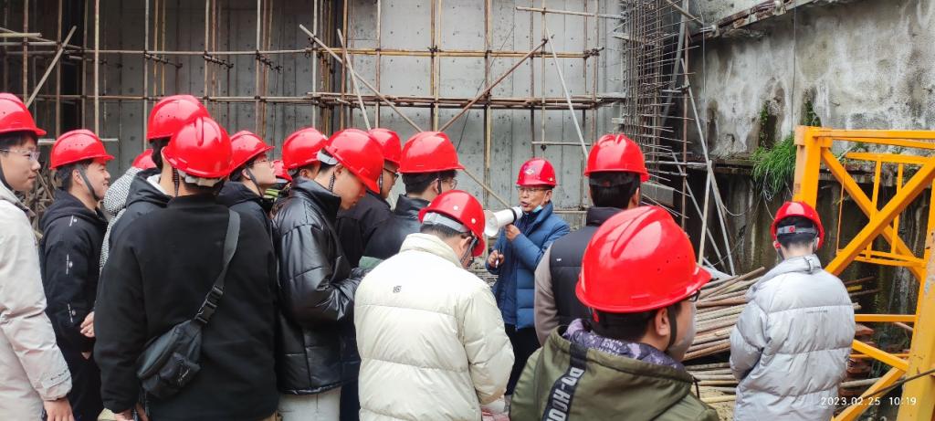 2023年2月25日,永利集团官网土木工程专业(城市地下空间工程方向)大四学生在土木工程系王述超、刘洋老师的带领下前往光山县金凯帝城市广场施工工地开展基坑工程毕业实习。