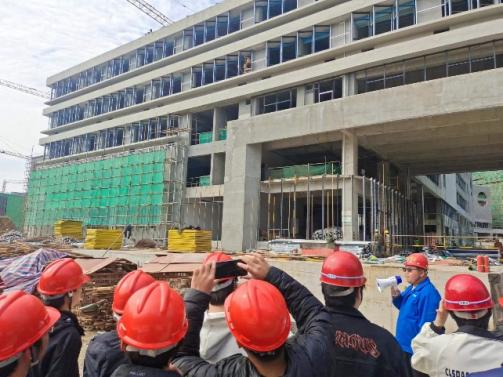 抵达现场后,工地负责人向同学们介绍了实验科研综合楼的工程概况,并结合现场施工进度,为同学们逐一讲解了施工现场钢筋加工流程、防水材料性能、模版支护工艺、混凝土浇筑工艺、塔吊安装工艺、桩筏基础施工工艺、深基坑桩基础支护施工工艺、土钉墙支护施工工艺和现场各种工程机械的用途等实践知识。