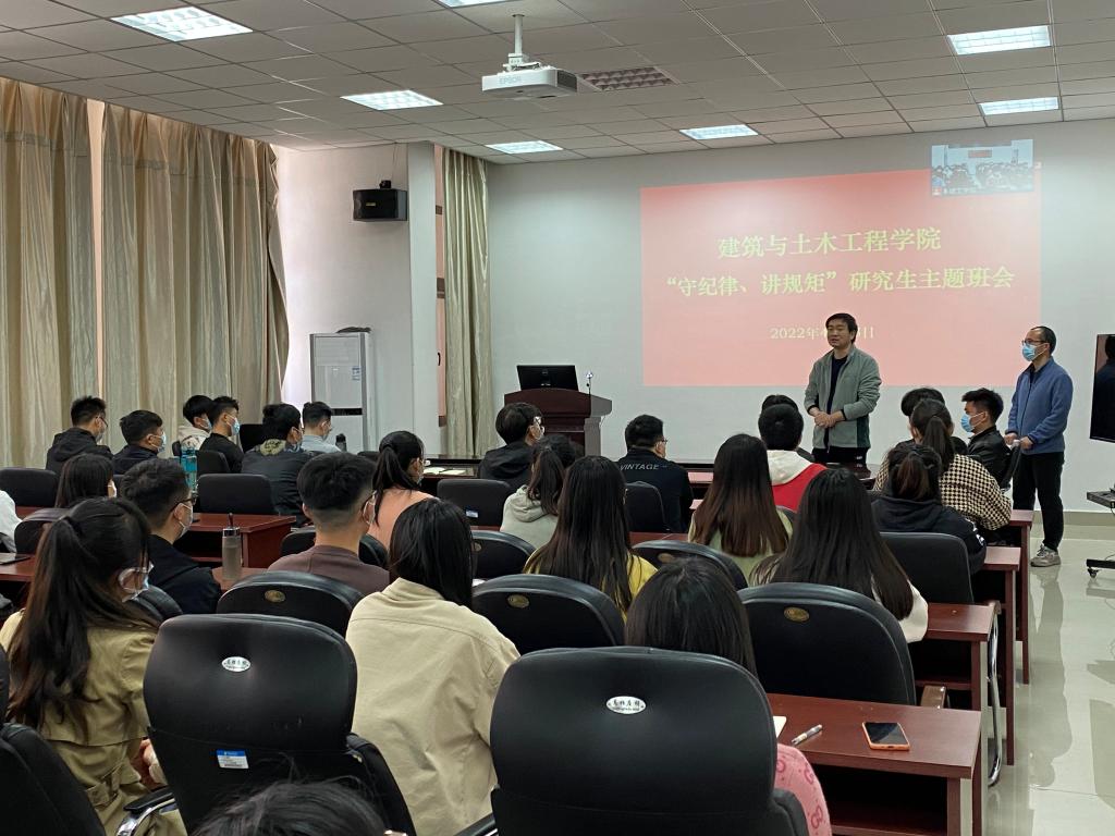 2022年4月18日下午2点,yl23411永利集团官网召开了研究生“守纪律、讲规矩”主题班会。研究生主管院长肖琪聃、研究生班主任马文强和全体研究生线下线上参加了本次班会,会议由马文强主持。