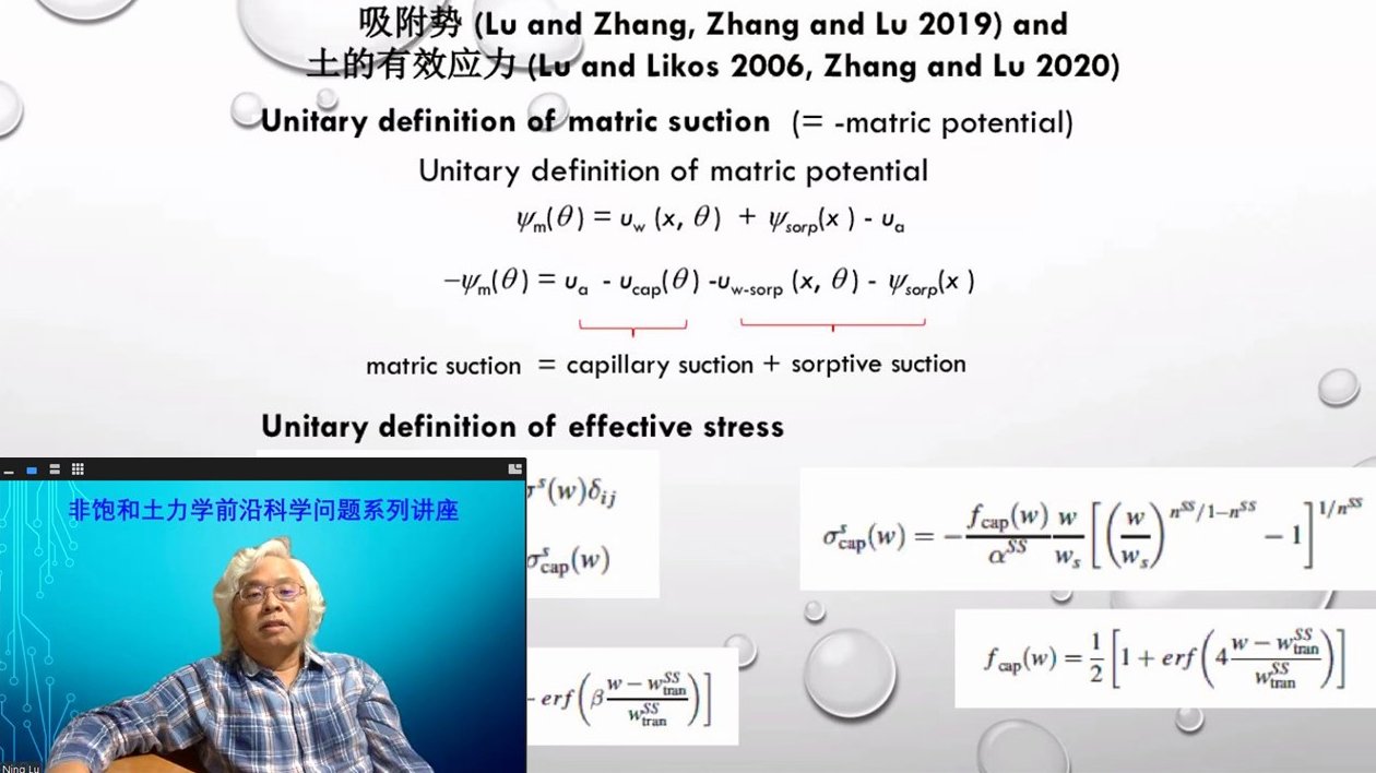 9月16日至11月18日,应yl23411永利集团官网邀请,美国科罗拉多矿业大学Ning Lu(卢宁)教授开设的18讲“非饱和土力学前沿科学问题系列云讲座”落幕,该系列讲座聚焦于非饱和土力学前沿领域,围绕土的吸附势(Soil sorptive potential)与土的有效应力(Soil effective stress)2大主题,18讲内容分别为: