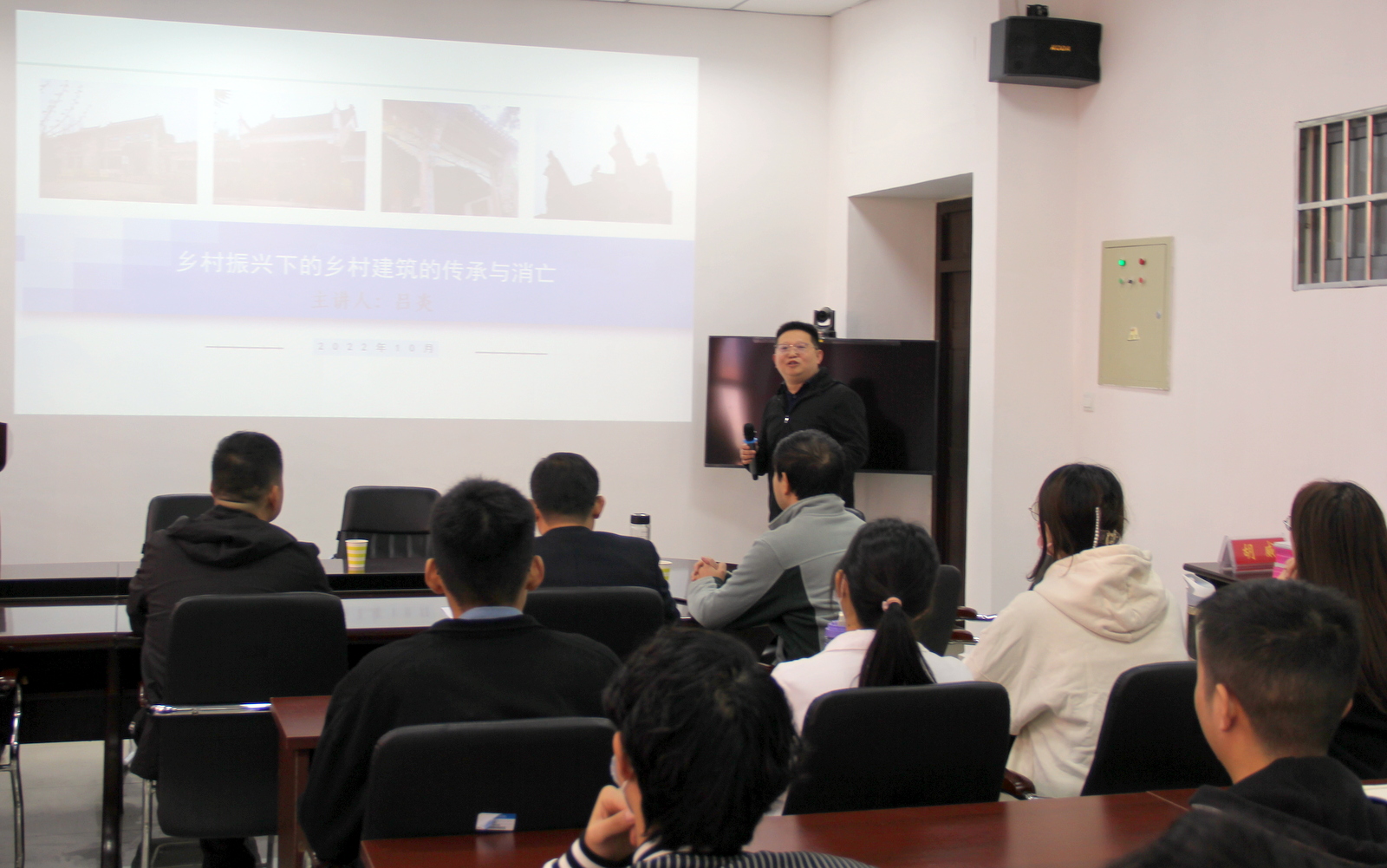 10月13日上午,应yl23411永利集团官网邀请,信阳市自然资源和规划局吕炎为永利集团官网师生作了题为“乡村振兴下的乡村建筑的传承与消亡”的学术报告。yl23411永利集团官网院长周葆春教授,副院长肖琪聃副教授、王颂副教授、青年教师吕强和全体研究生参加了此次报告会。