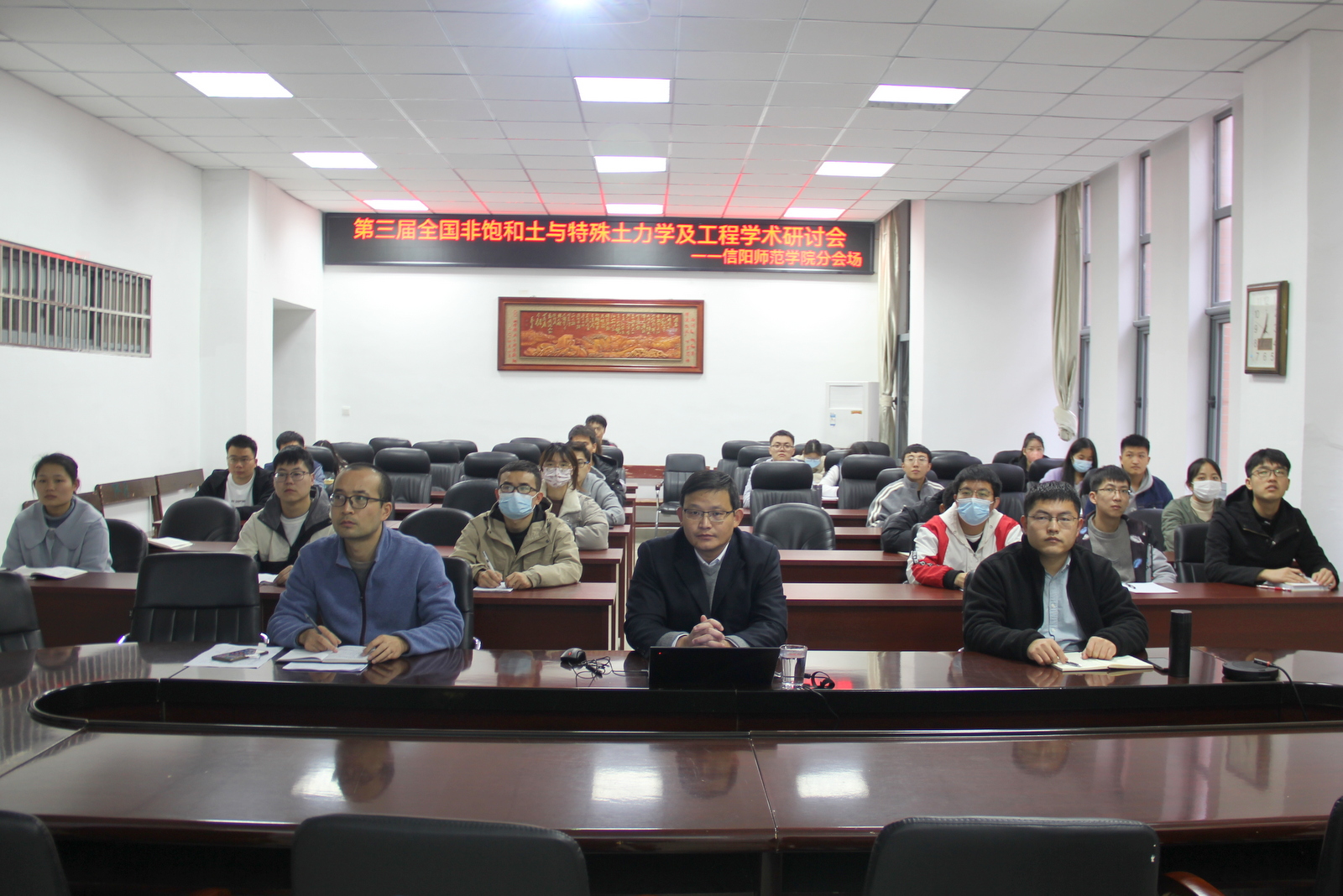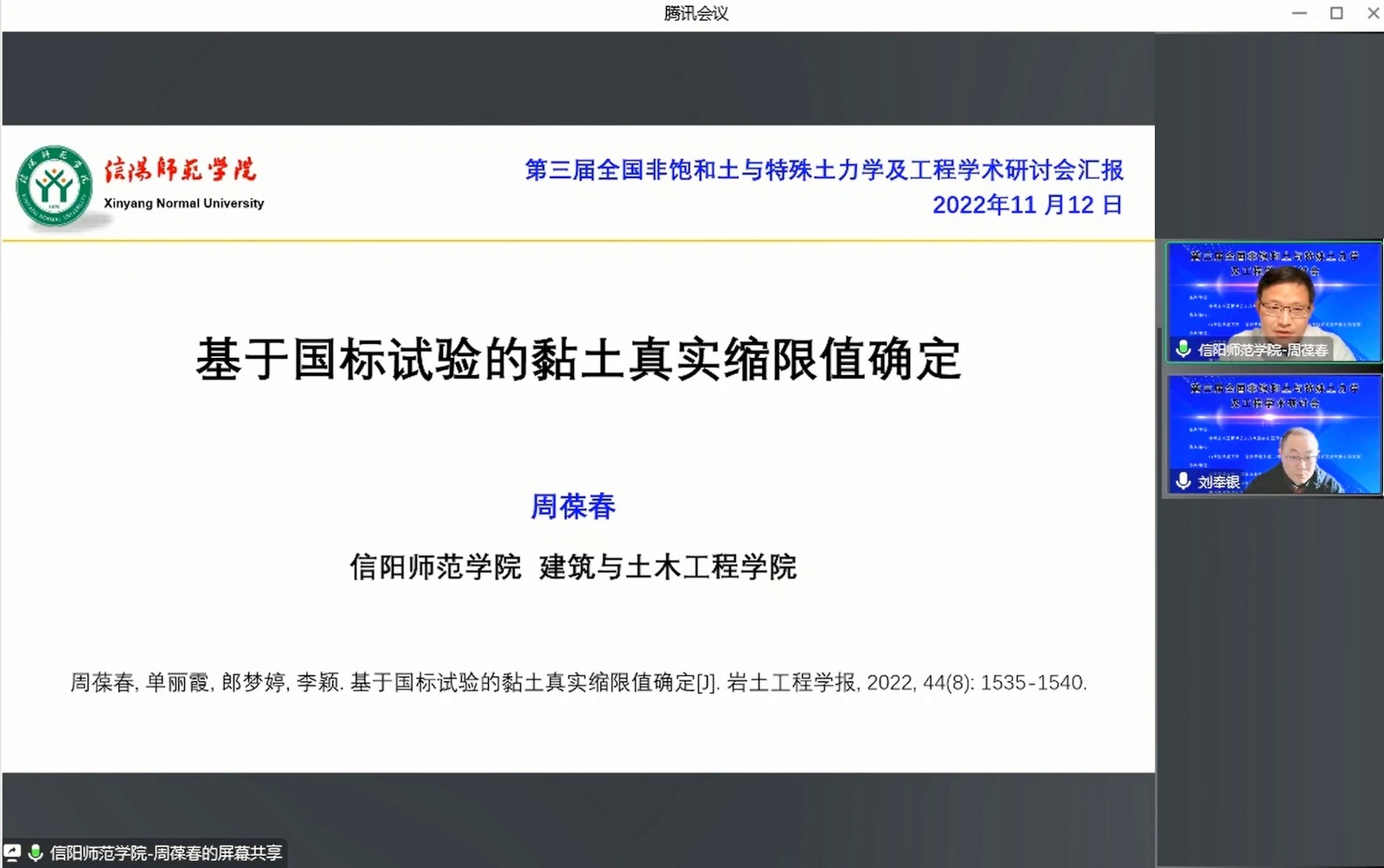 永利集团官网在yl23411永利集团官网会议室设立了信阳师范学院分会场,分会场参会师生50余人。会议邀请yl23411永利集团官网院长周葆春教授作了题为“基于国标试验的黏土真实缩限值确定”的特邀报告。