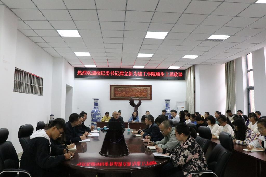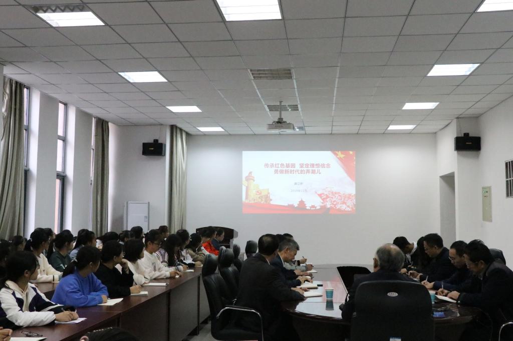 11月1日,根据学校“不忘初心、牢记使命”主题教育的工作安排,校纪委书记龚立新在综合实验楼206会议室为yl23411永利集团官网师生上了一堂题为“传承红色基因,坚定理想信念,勇做新时代的弄潮儿”的思政课。学院领导班子成员,辅导员、党支部书记和部分学生聆听了思政课。