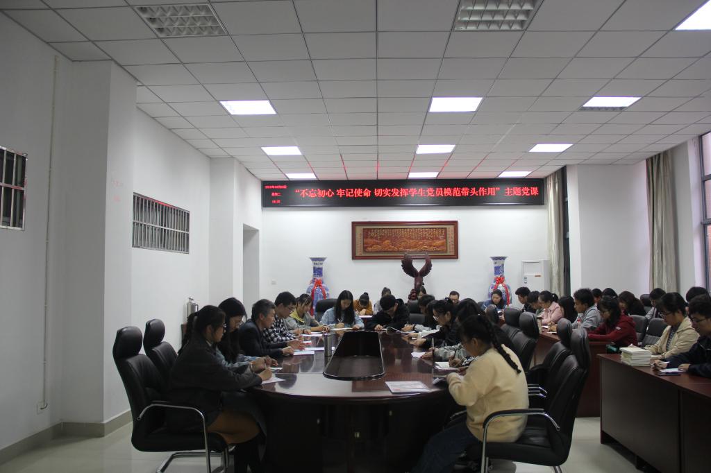 为深入学习习近平新时代中国特色社会主义思想,扎实推进“不忘初心、牢记使命”主题教育,10月8日下午,yl23411永利集团官网党委书记黄学玉作了题为“不忘初心,牢记使命,切实发挥学生党员的模范带头作用”的专题党课。学院学生第一党支部、研究生党支部全体党员参加学习。