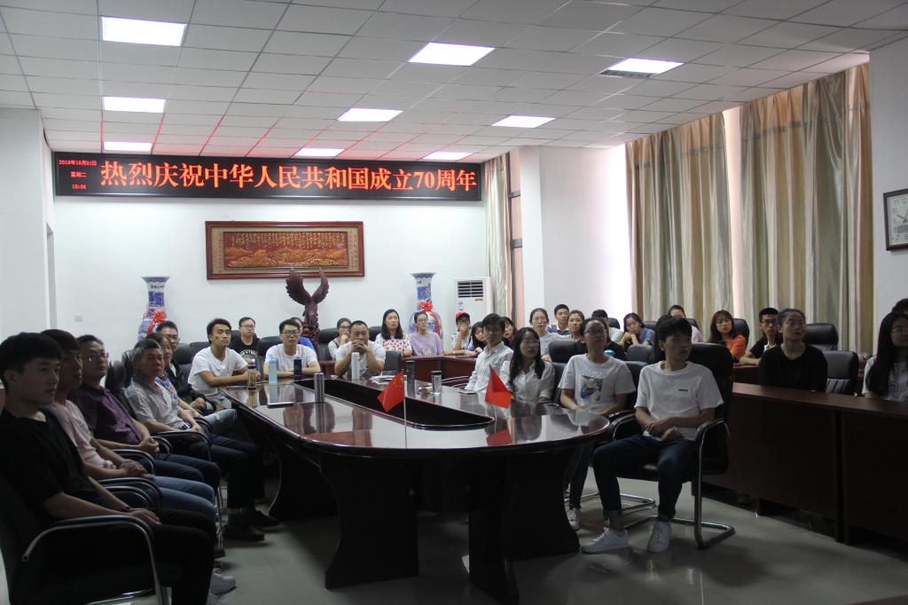 10月1日上午,yl23411永利集团官网积极组织师生在综合实验楼206会议室集中收看了庆祝中华人民共和国成立70周年大会现场直播及阅兵式、群众游行,共同庆祝祖国70华诞。学院党委书记黄学玉、党委副书记方明科,部分师生和党员代表共同观看了直播盛况。