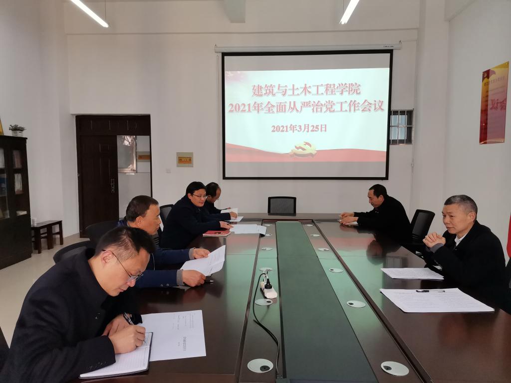 3月25日,yl23411永利集团官网在综合实验楼203会议室召开2021年全面从严治党工作会议。学院党委班子全体成员参加了会议。会议由学院党委书记黄学玉主持。