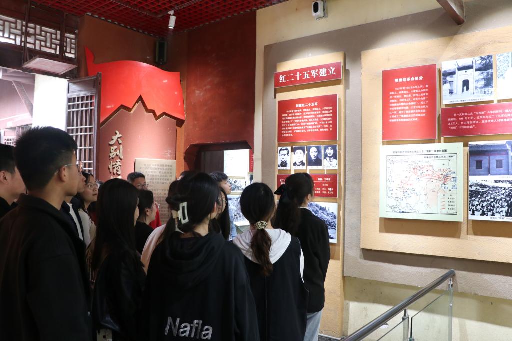 在罗山县革命烈士陵园,全体党员瞻仰了革命烈士纪念碑,敬献花篮,鞠躬默哀,深情缅怀为革命胜利献出宝贵生命的革命先烈。在红二十五军革命纪念馆,大家参观了何氏祠堂、红军医院旧址、红军碾、红军井等红色革命遗迹,详细了解了红二十五军的英雄壮举和光辉历史。在何家冲政治文化广场,全体党员举起右拳,重温入党誓词,砥砺入党初心,践行使命担当。随后,大家追寻革命先辈的红色足迹,重走长征路,身临其境地体会红军长征的坚定信仰与顽强意志,亲身感悟红二十五军坚忍不拔、自强不息、勇往直前的长征精神。在长征出发地古银杏树下,学生党员代表为大家讲述了《红二十五军誓师出征》、《一颗红心永向党—开国大将徐海东》的党史故事。
