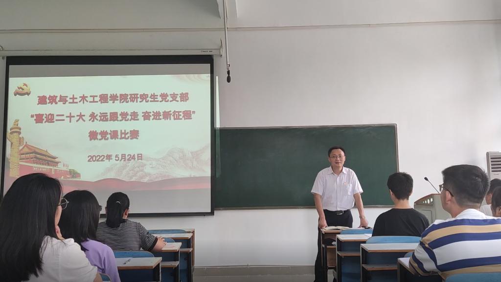 为永利集团官网研究生党员们能够传承红色基因,赓续精神血脉,引导研究生们继承中国共产党人的优良传统,筑牢理想信念,以实际行动迎接党的二十大胜利召开,永利集团官网研究生党支部按照学院的总体部署,以第一批纳入中国共产党人精神谱系的46种伟大精神为专题,于5月24日在综合实验楼308教室开展了“喜迎二十大 永远跟党走 奋进新征程”微党课比赛活动。学院党委书记方明科、副书记冀鹏、专职组织员张海燕、支部全体党员参加活动。