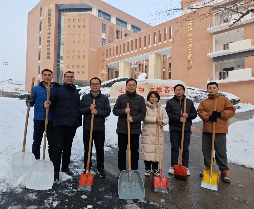 近期,我市遭遇大范围低温雨雪冰冻天气,给大家的生产生活带来不利影响。2月5日,yl23411永利集团官网组建“党员应急志愿服务队”,在学院党委号召下,两个教师党支部的在信教师踊跃报名,党支部书记、教工党员和入党积极分子一行7人前往“支部连支部”对接社区-华森社区除雪,保障路面畅通,方便社区居民出行。