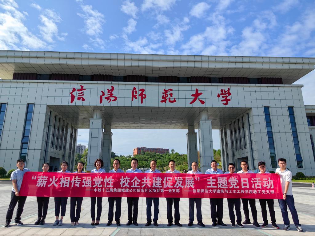 为迎接党的103岁生日,持续弘扬伟大建党精神,以党建引领高质量发展,6月20日,yl23411永利集团官网教工党支部与中铁十五局集团城建公司信阳片区项目党支部开展“薪火相传强党性 校企共建促发展”“支部联支部”主题党日活动。
