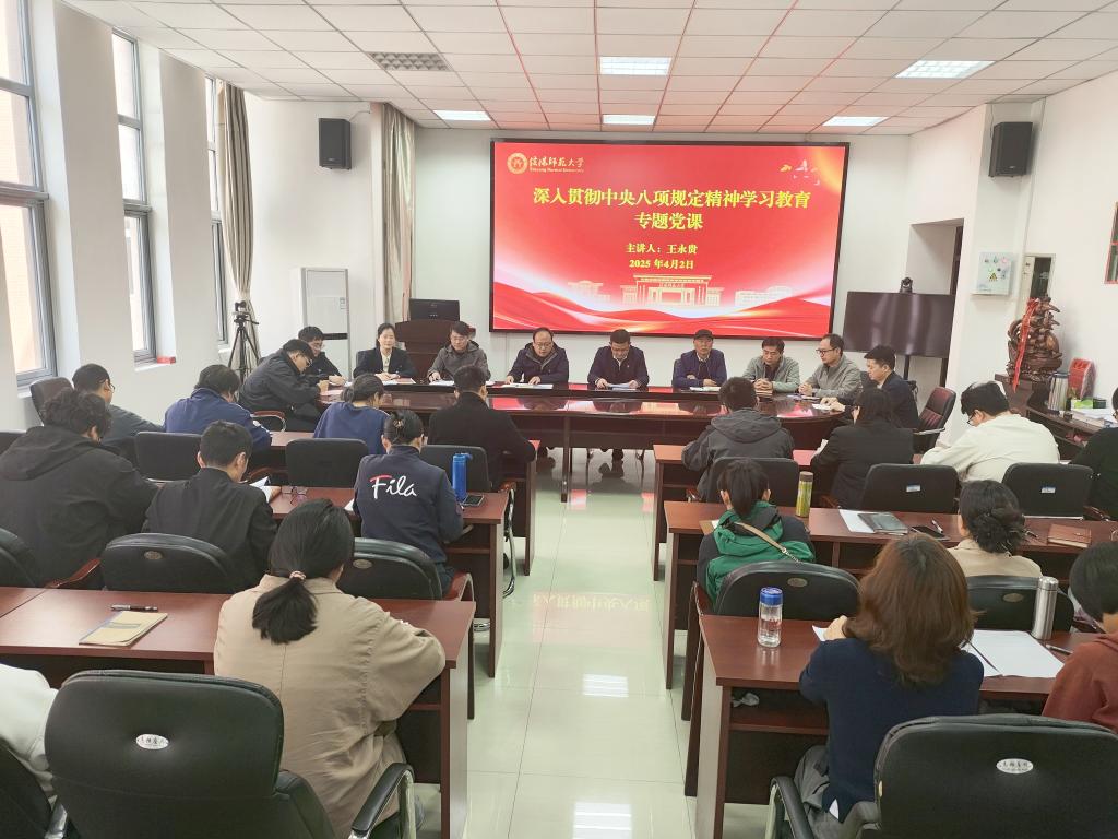 王永贵结合自身学习体会和学院工作实际,从“学有所获:在历史逻辑与时代使命中深化思想认识”“思有所获:在对照检视与问题剖析中明确改进方向”“行有所向:在学以致用与实干担当中谋划工作”三个方面,为大家讲授了一堂深入贯彻中央八项规定精神学习教育专题党课。