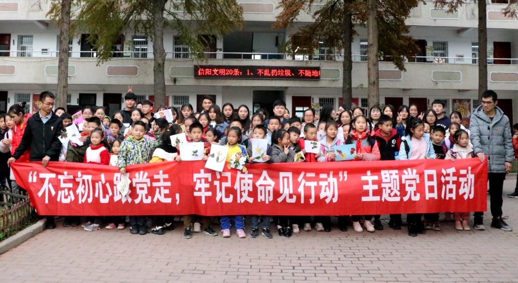 11月19日,为进一步深入贯彻、落实“不忘初心、牢记使命”主题教育有关精神,yl23411永利集团官网组织师生代表赴信阳市平西小学开展了“不忘初心跟党走、牢记使命见行动”主题活动,学院全体党支部书记、学生党支部党员代表、谭山青年志愿者协会代表、共计40余人参加了本次活动。