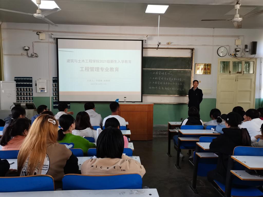 为帮助新生树立专业思想,培养专业意识,根据yl23411永利集团官网2021级新生入学教育工作安排,10月13日上午,学院邀请工程管理系主任、副教授李建楠老师在教二T5教室为2021级新生作工程管理专业认知专题辅导。学院党委书记方明科、副书记冀鹏与2021级工程管理专业新生一起聆听了辅导报告。