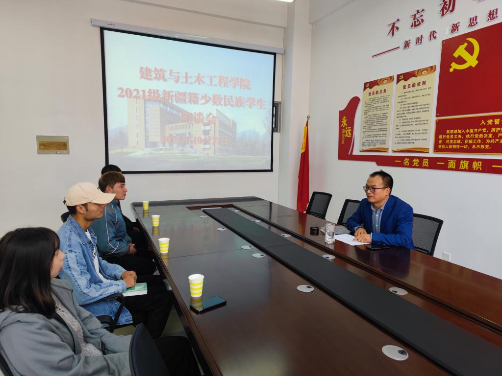 10月27日上午,yl23411永利集团官网举办2021级新疆籍少数民族座谈会,学院党委副书记冀鹏与四名新疆籍少数民族进行一一座谈。