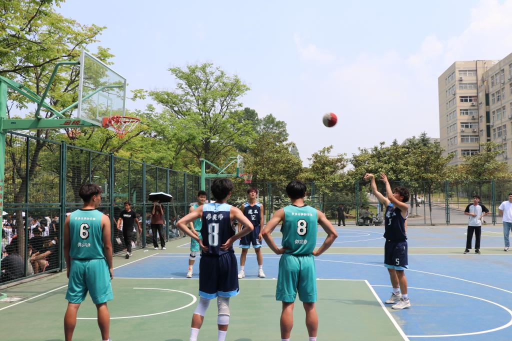 4月20日中午,信阳师范学院“谭山杯”小组赛第八天,yl23411永利集团官网男篮对阵音乐与舞蹈学院。