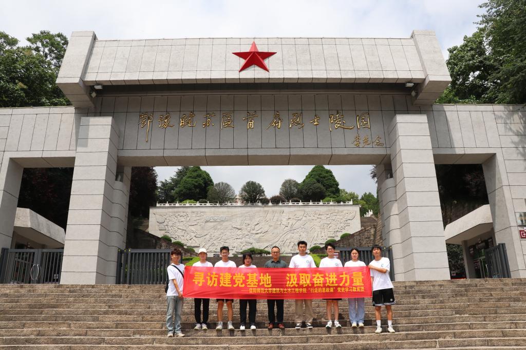 寻访建党基地,汲取奋进力量。7月9日,yl23411永利集团官网“党史学习教育团”重温习近平总书记重要考察足迹,前往“将军故里”新县开展暑期社会实践活动,先后参观了鄂豫皖苏区首府革命博物馆、鄂豫皖苏区首府烈士陵园、鄂豫皖革命根据地首府旧址群、列宁小学旧址、红田惨案旧址、田铺大湾创客小镇等红色教育基地。