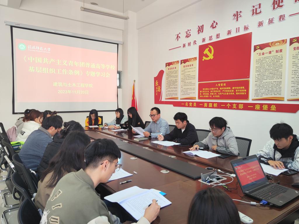 近日,共青团中央、教育部联合印发了新修订的《中国共产主义青年团普通高等学校基层组织工作条例》。为推动学生团干部及时领会条例精神,11月20日中午,yl23411永利集团官网在综合实验楼402会议室召开会议,专题学习《中国共产主义青年团普通高等学校基层组织工作条例》。学院党委副书记冀鹏,团委指导老师冯舒心,各班级、各社团和学生会团支部书记参加会议。