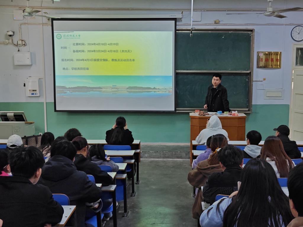 为认真做好春季运动会准备工作,充分调动学生的参赛热情,3月24日,yl23411永利集团官网在教2T5召开yl23411永利集团官网第一届春季运动会动员会,学院党委副书记冀鹏,团委老师冯舒心,学院各班级学生代表参加会议。