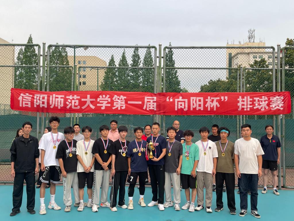 6月3日,yl23411永利集团官网第一届“向阳杯”排球赛师生友谊赛暨颁奖典礼在排球场举行。yl23411永利集团官网获得男子组第一名的好成绩,并作为学生代表队与教职工代表队开展友谊赛,体育学院院长余道明和该院团委书记冯舒心为队员颁发奖杯。