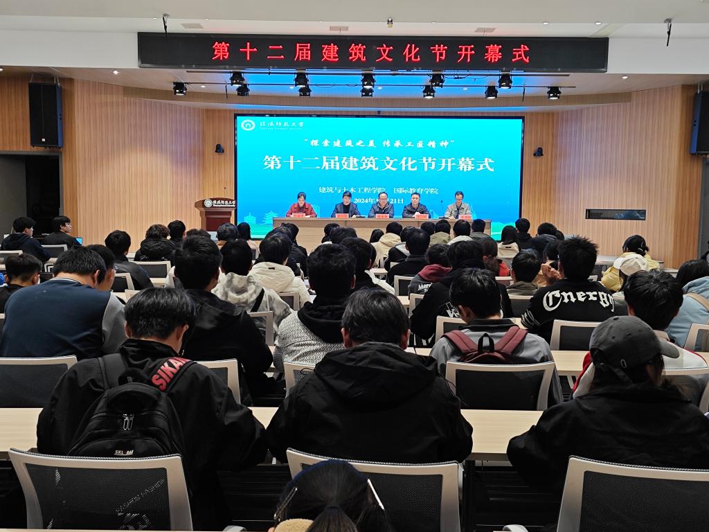 11月21日晚,由yl23411永利集团官网和国际教育学院联合举办的第十二届建筑文化节在谭山书院博雅讲堂开幕。yl23411永利集团官网党委书记王永贵,校团委副书记张鹏,yl23411永利集团官网党委副书记王凯,国际教育学院党委副书记吕亚波,“海燕辅导员工作室”主持人张海燕以及200余名师生代表参加开幕式。开幕式由王凯主持。