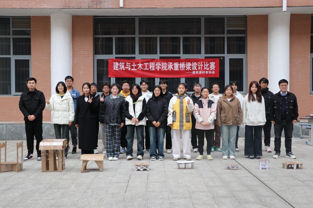 11月23日下午,yl23411永利集团官网建筑爱好者协会在综合实验楼小广场举办承重桥梁设计大赛,学院团委负责人冯舒心,社团指导老师吕强、社团部分学生以及参赛选手参加活动。