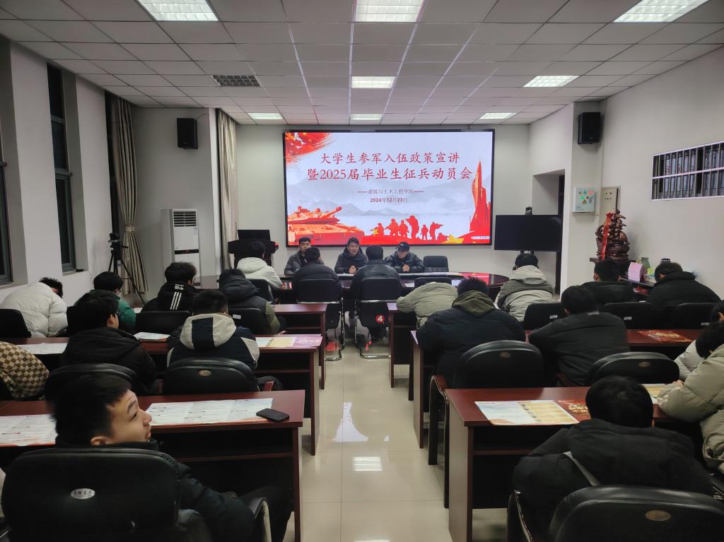 为积极响应国家号召,激发大学生参军报国热情,切实做好大学生征兵工作,12月23日,yl23411永利集团官网在综合实验楼206会议室召开大学生参军入伍政策宣讲暨2025届毕业生征兵动员会。学院党委副书记王凯,专职辅导员冯舒心,2023级退役大学生皮里屯·阿布迪买买提以及2025届毕业班男生参会。