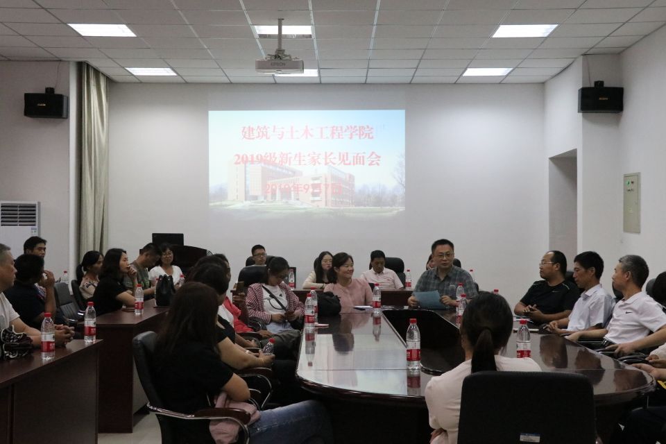 97日下午,建筑与土木工程学院2019级新生家长见面会在综合实验楼206会议室举行。学院党委书记黄学玉、党委副书记方明科、副院长刘林超工程管理系系主任李建楠、2019级新生辅导员张海燕部分新生家长参加了本次见面会。