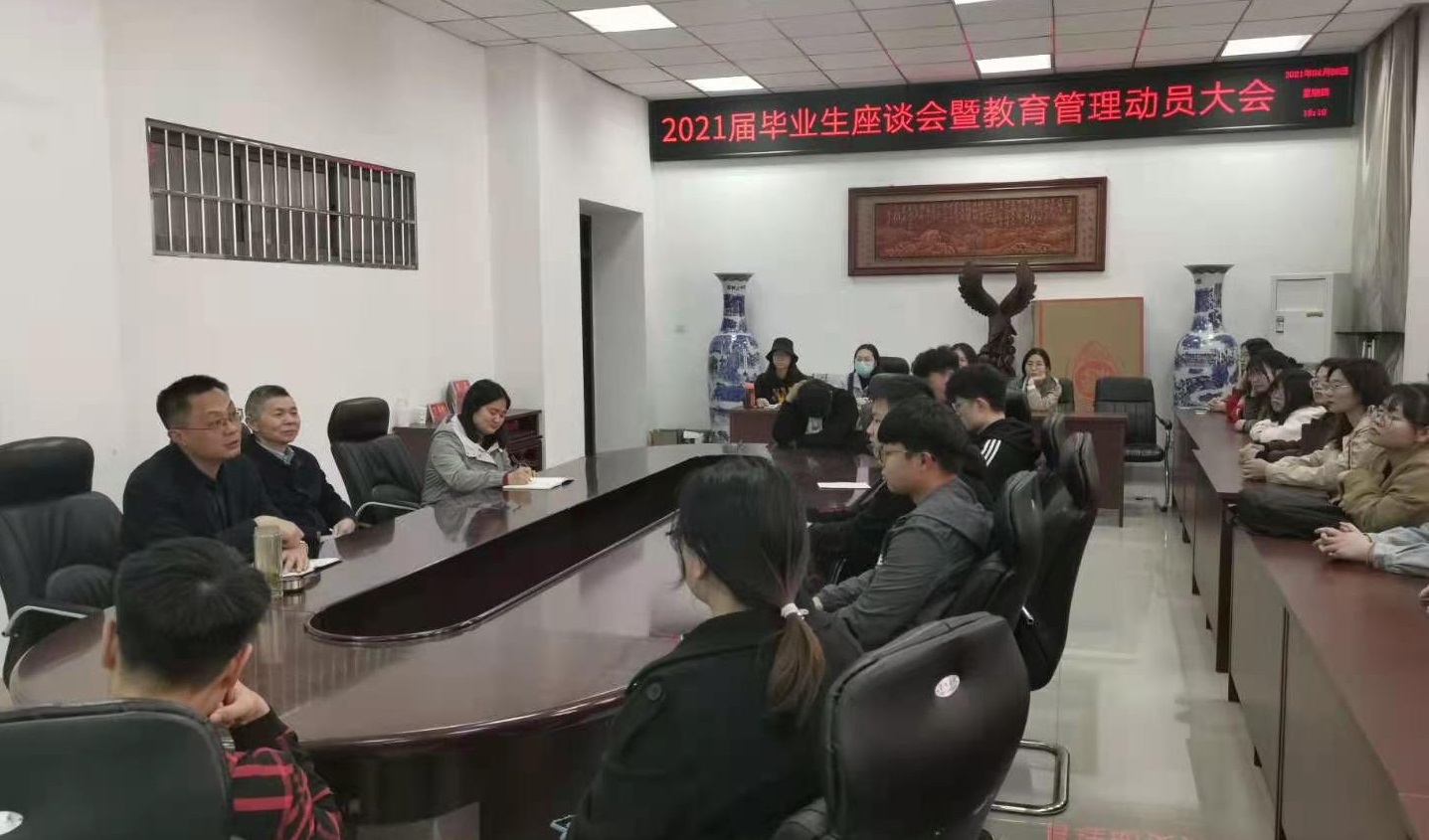 为进一步加强学生与学院的沟通联系,倾听毕业生心声,及时掌握毕业生的思想、学业、就业、生活等各方面的情况,针对性地解决毕业生在学习、生活中遇到的困难,永利集团官网于4月8日下午4点在综合实验楼206会议室召开2021届毕业生座谈会暨教育管理动员大会。学院党委书记黄学玉、副书记方明科、毕业班辅导员及毕业生代表40余名参加了会议。