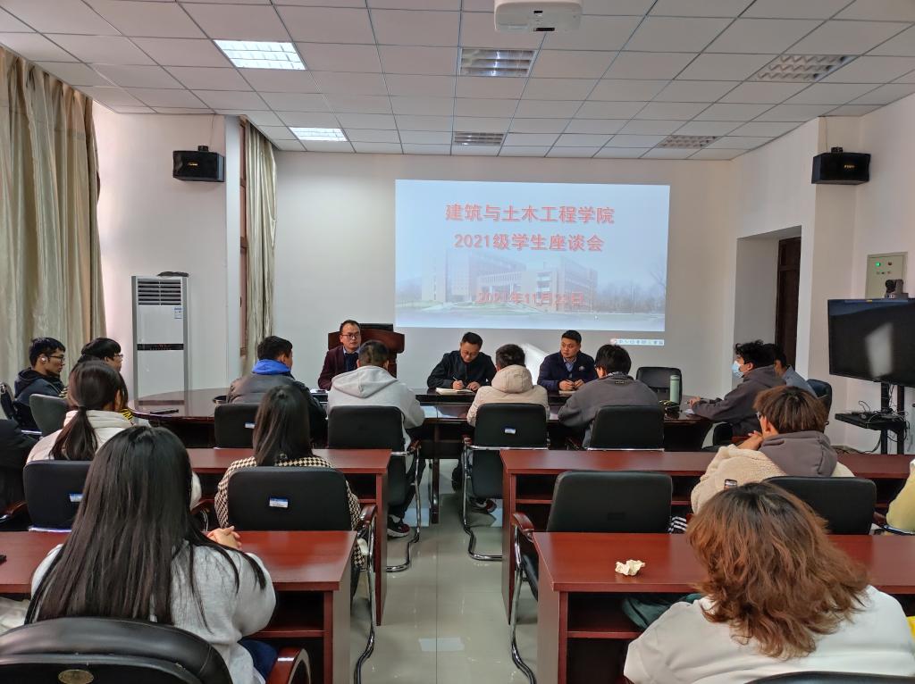 会上,2021级学生各班主要学生干部分别汇报了本学期以来班级日常管理情况,学生代表现场咨询了在专业学习、申请入党、期末备考等方面的疑惑,与会领导和老师现场进行了解答。