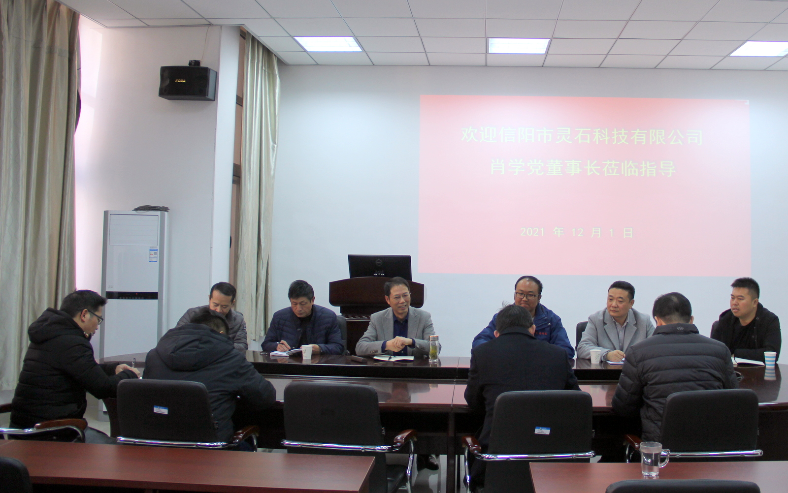 12月1日下午,应yl23411永利集团官网邀请,信阳市灵石科技有限公司肖学党董事长一行6人来永利集团官网指导交流。座谈会在yl23411永利集团官网206会议室举行,党委书记方明科、院长周葆春、副院长肖琪聃、王述超老师、马文强老师、闫东老师和马全国老师参加了此次座谈会,会议由周葆春主持。