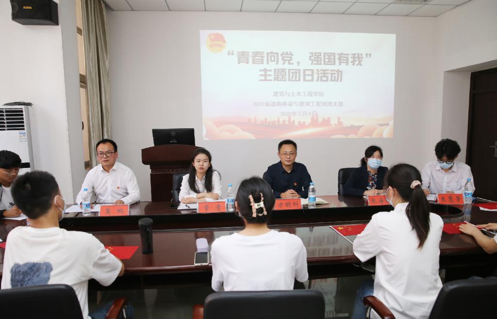 5月4日下午,yl23411永利集团官网2021级道路桥梁与渡河工程班团支部“青春向党 强国有我”主题团日活动在综合实验楼206会议室举行。校团委副书记常青、yl23411永利集团官网党委书记方明科、党委副书记冀鹏和共青团员代表共40余人参加活动。活动由班级团支书赵琦琦主持。