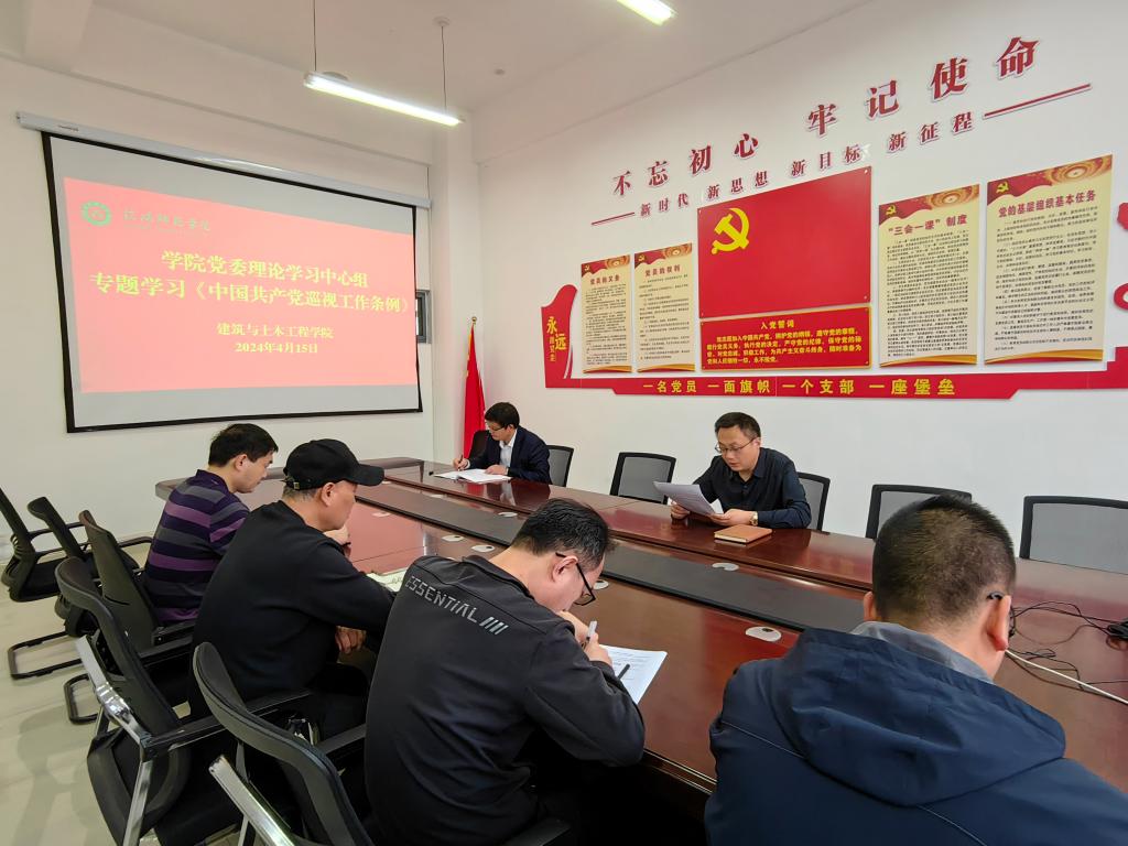 4月16日上午,yl23411永利集团官网召开党委理论学习中心组会议,专题学习新修订的《中国共产党巡视工作条例》(以下简称《条例》)。中心组全体成员参加会议,会议由学院党委书记方明科主持。