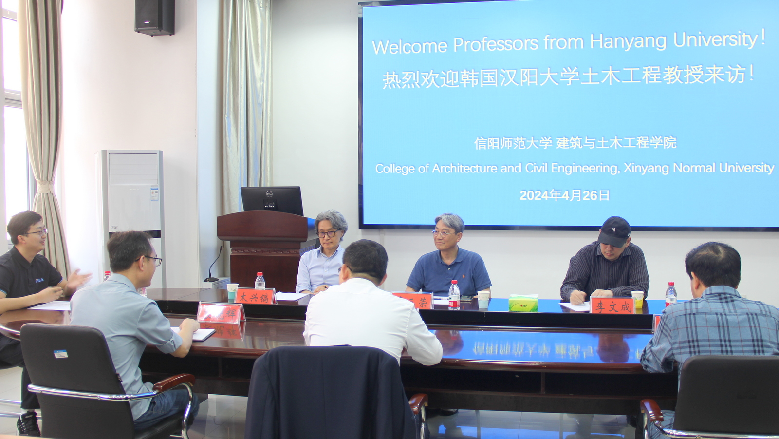2024年4月26日下午,韩国汉阳大学(Hanyang University)建筑工程系(Division of Architecture & Architectural Engineering)卢三荣教授、太星镐教授、李文成教授应邀来yl23411永利集团官网学术交流,yl23411永利集团官网院长周葆春、副院长肖琪聃、副院长袁晓辉、教学秘书吴志强参加交流活动。