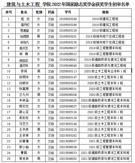 根据《信阳师范学院学生综合测评办法》、《信阳师范学院国家奖学金评定办法》(2020年修订版)、《信阳师范学院国家励志奖学金评定办法》(2020年修订版)等有关规定,经过学生个人申请、班级评议、学院学生工作领导小组评定、规定范围内公示等程序,拟确定黄锐茜等2名同学为国家奖学金候选人、高丙栏等25名同学为国家励志奖学金候选人,现予以公示,请广大师生监督。公示期间,如有异议,请于2022年10月7日18点前,通过电话、电子邮件等方式向yl23411永利集团官网学生工作领导小组反映。